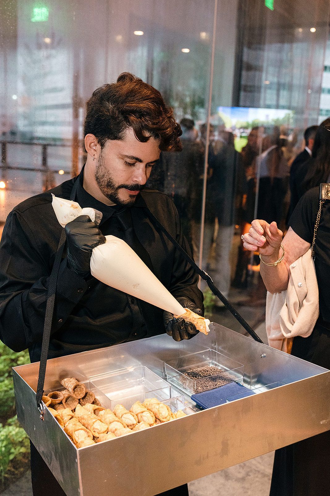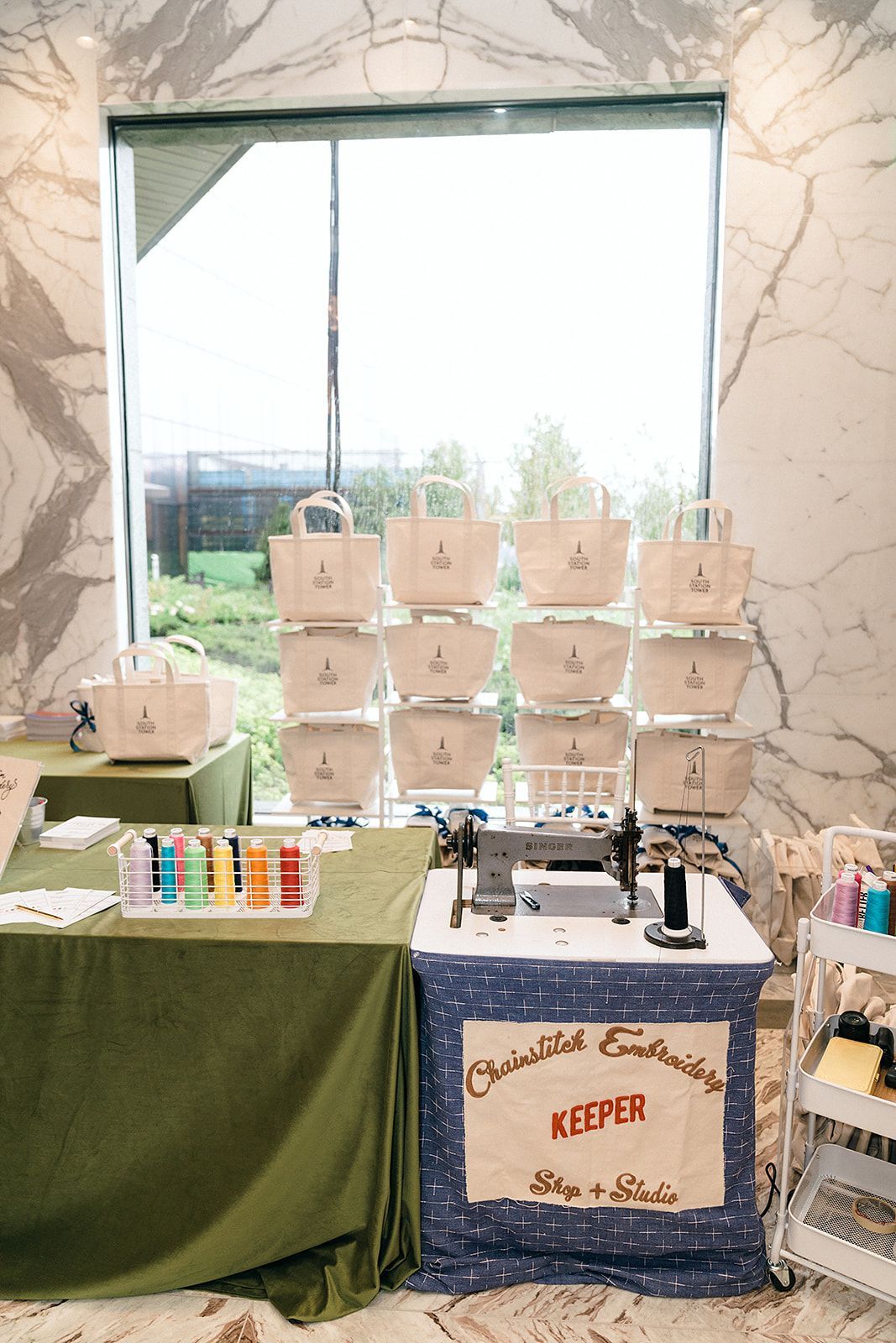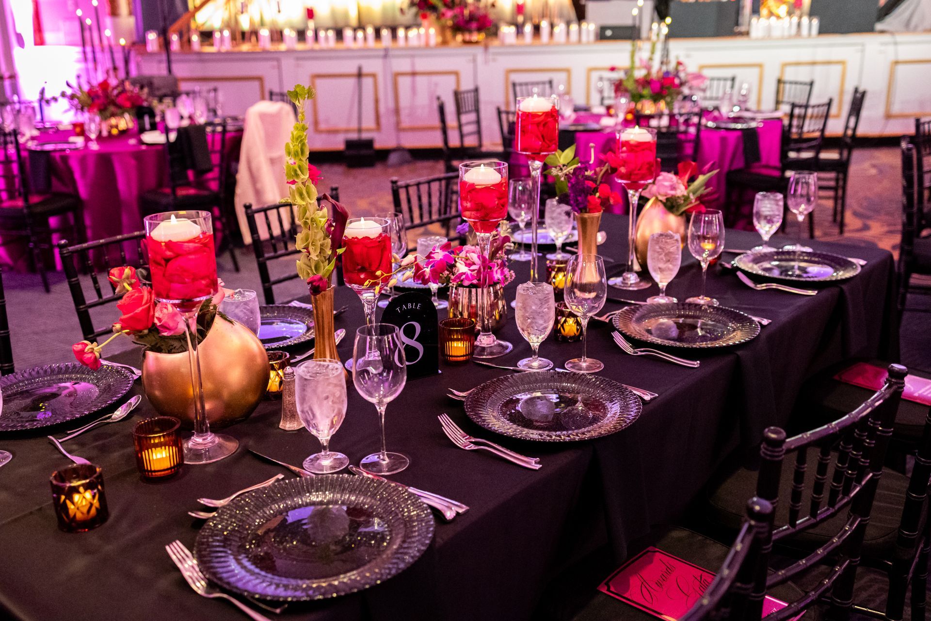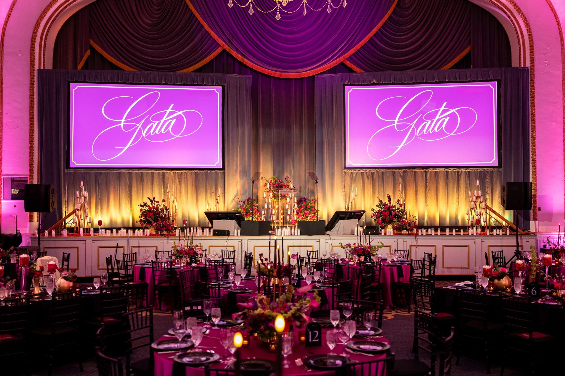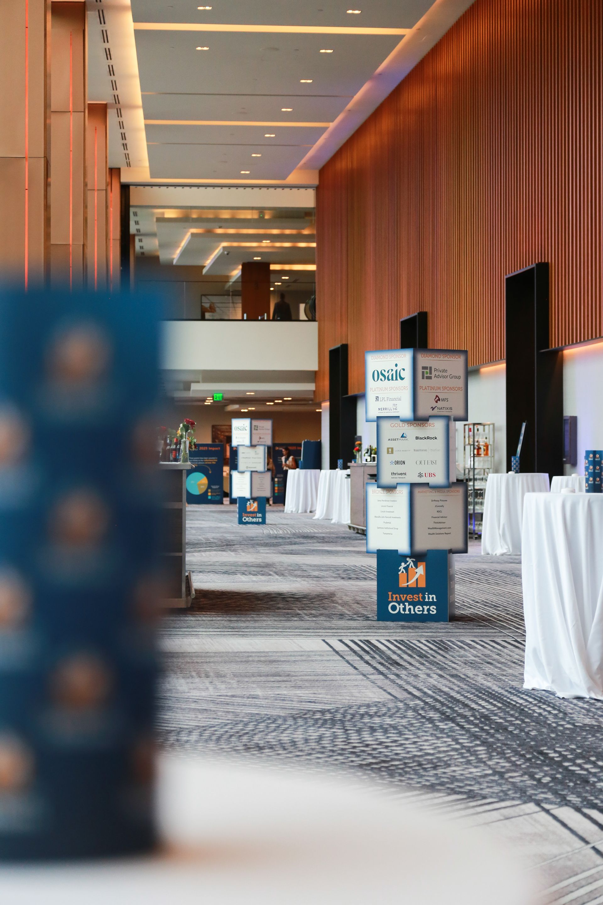 • A large room with tables and chairs under a tent