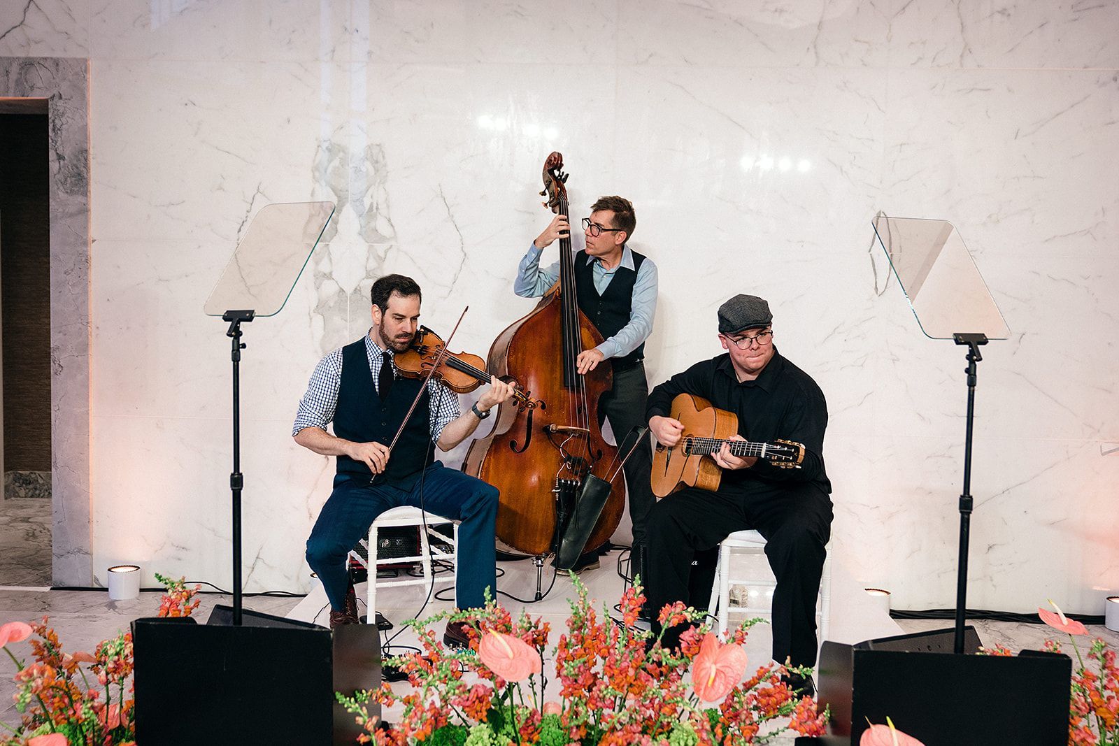 • Man in yellow blazer, hat, and bow tie reads